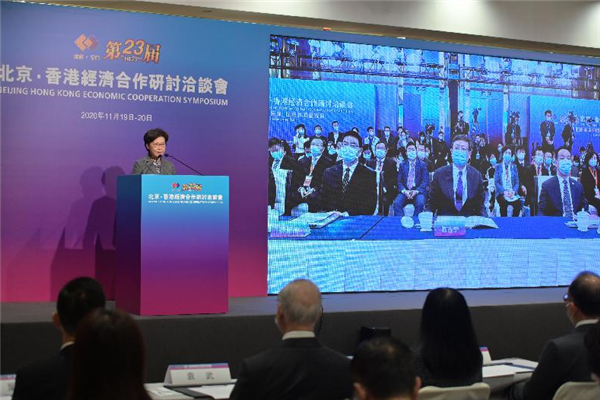 香港行政長(zhǎng)官林鄭月娥19日上午出席第二十三屆“北京?香港經(jīng)濟(jì)合作研討洽談會(huì)”
