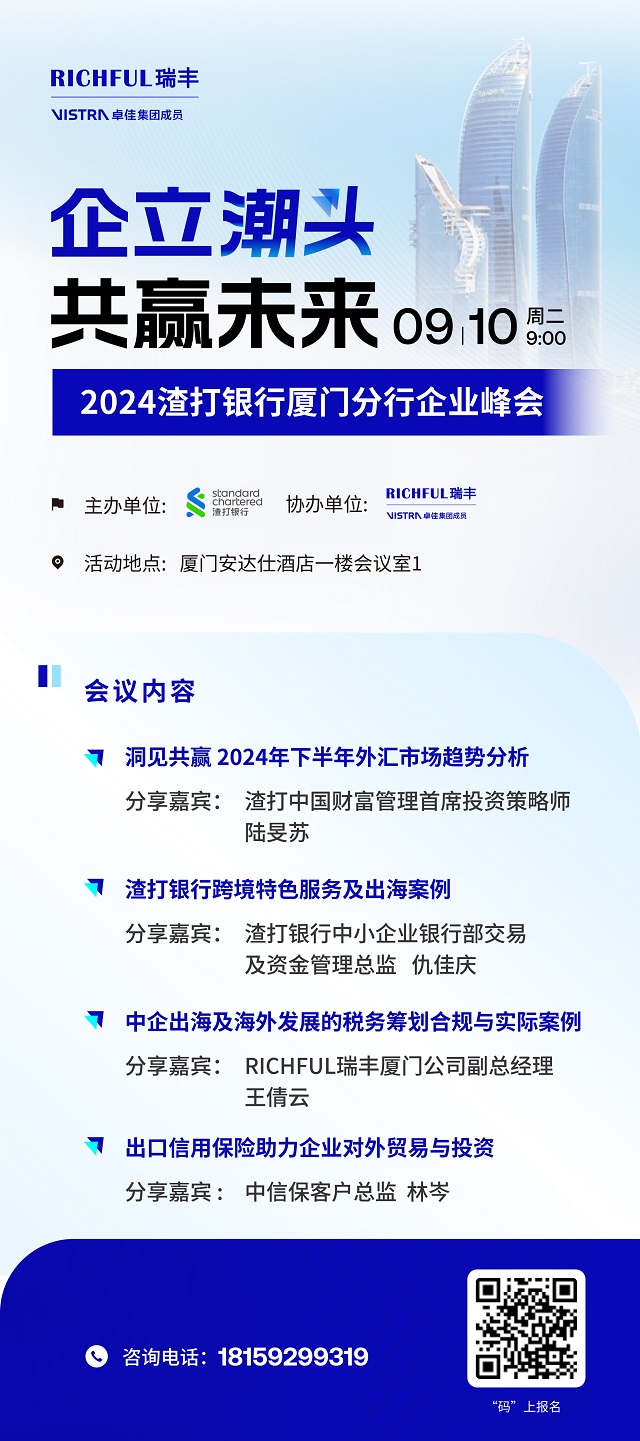 活動(dòng)預(yù)告 | 企立潮頭 共贏未來(lái)——2024外資銀行廈門分行企業(yè)峰會(huì)