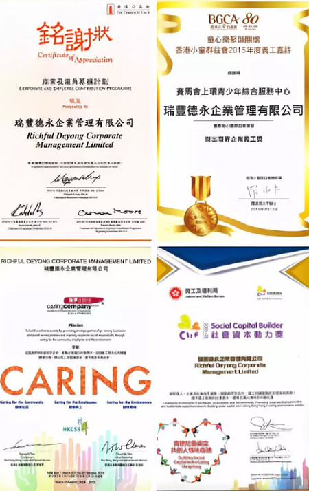 榮獲香港社會服務(wù)聯(lián)會頒發(fā)的香港商界展關(guān)懷榮譽獎