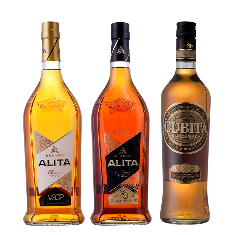 Alita Brandy VSOP is produced from the blend of selected brandies from BordeauxCognac regions in France. The brandy spirit is made by double distillation of the grape wine produced from the following grape varieties: Ugni Blanc, Folle Blanche, Colombard. The taste is delicatelight, typical for French brandy. It has perfectly balancedintense aroma, with the hints dried fruit, caramelvanilla.
