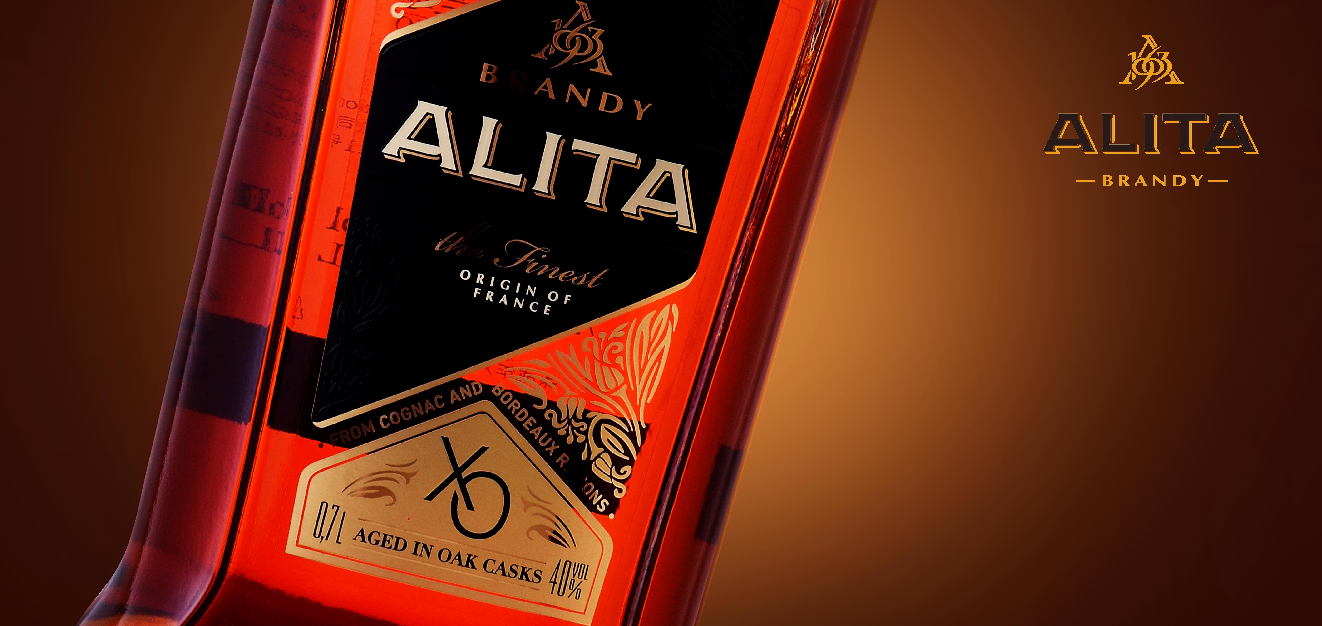 Alita Brandy XO is a long aged in oak casks brandy. It was produced from the wine made of grapes grown in BordeauxCognac regions (France). It has richintensive aroma, with hints of dried fruit, caramelvanilla.