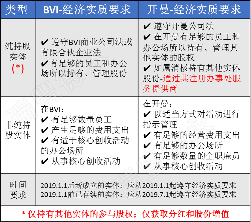 開曼不適用:開曼本土公司、投資基金或從事投資基金業(yè)務(wù)的主體、開曼以外其他稅收管轄區(qū)稅務(wù)居民。? 經(jīng)濟(jì)實(shí)質(zhì)要求: