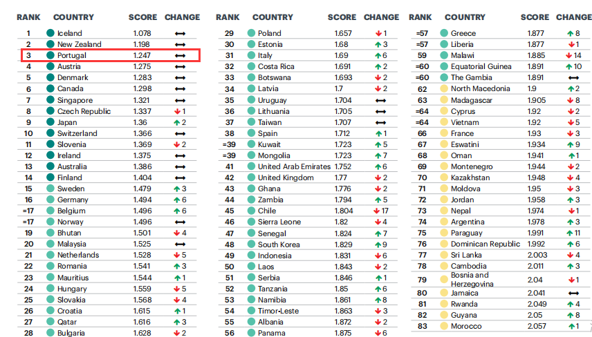 2020年6月10日,世界經(jīng)濟(jì)與和平研究所出版了最新的“2020全球和平指數(shù)報(bào)告”,葡萄牙排名全球第三!也是歐盟中最安全的成員國(guó)!89%的人認(rèn)為葡萄牙全國(guó)是安全的