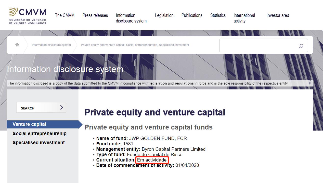 該基金項(xiàng)目為葡萄牙的合法私募股權(quán)基金項(xiàng)目,在葡萄牙證券監(jiān)督市場(chǎng)委員會(huì)(CMVM)中可查詢到獲批的官方公式信息