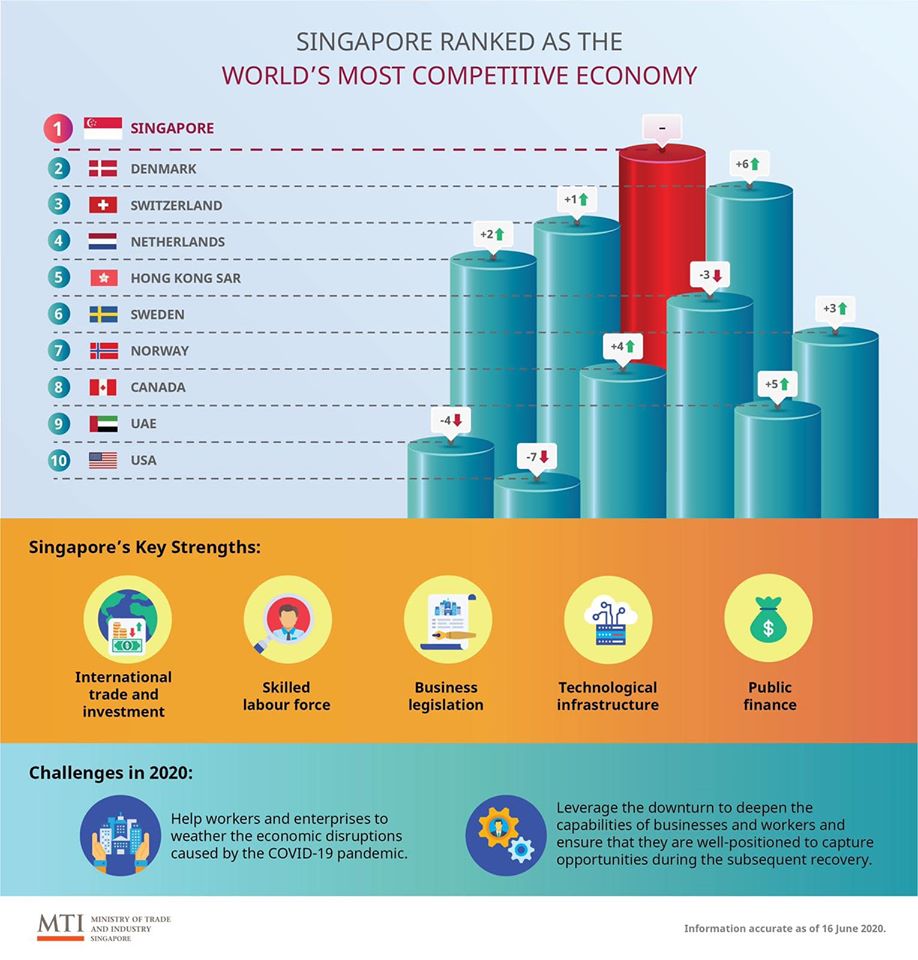 根據(jù)國際管理發(fā)展協(xié)會(IMD)的世界競爭力排名,新加坡已連續(xù)第二年位居全球最具競爭力的經(jīng)濟體。IMD的報告著眼于各國的競爭力,或為國民的福祉競爭和維持長期經(jīng)濟增長的能力。今年的排名來自2019年的統(tǒng)計數(shù)據(jù)和2020年2月至4月的調(diào)查數(shù)據(jù)。