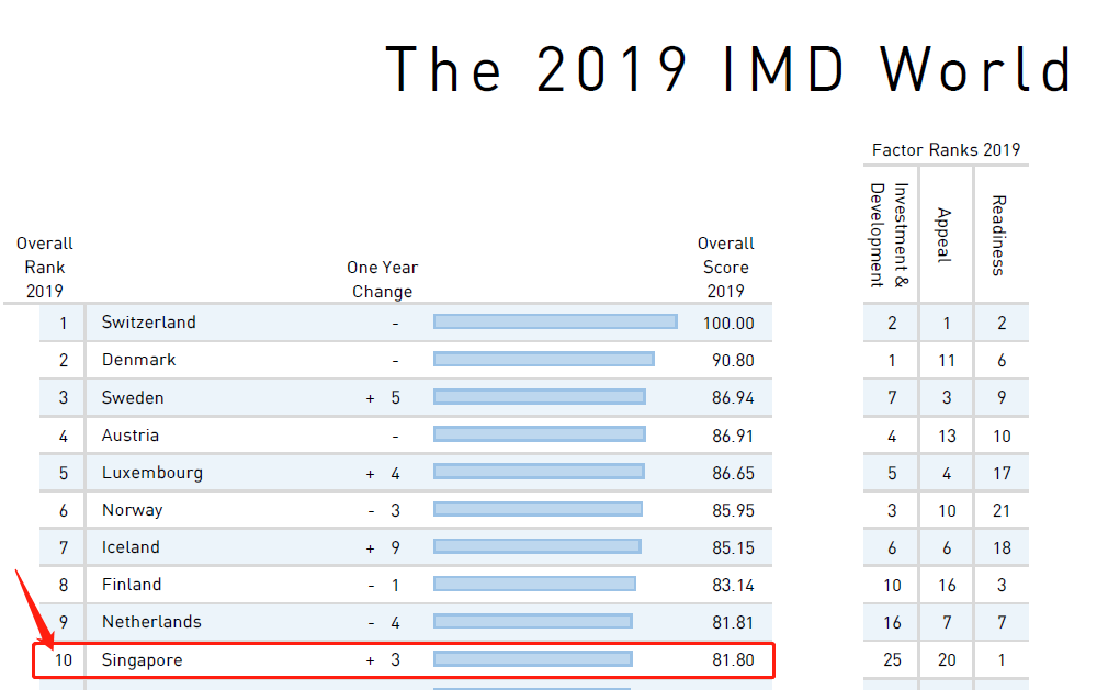 根據(jù)《2019年IMD世界人才報(bào)告》,全球63個(gè)國家和地區(qū)中,新加坡的人才準(zhǔn)備度,是位于全球第一的。新加坡的整體綜合排名也躍升至全球第10名,是亞洲唯一進(jìn)入前10的國家。