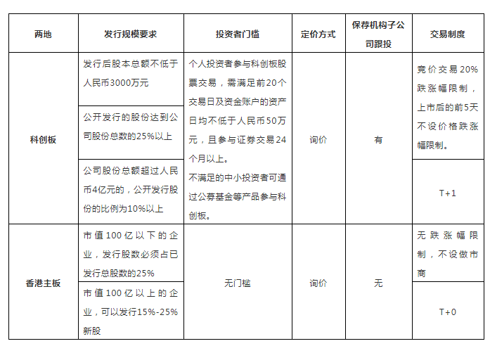 這些條件的放寬也使科創(chuàng)板進一步與港股和納斯達克市場的機制靠攏,但是依舊存在一定的差異,我們拿港交所來進行對比: