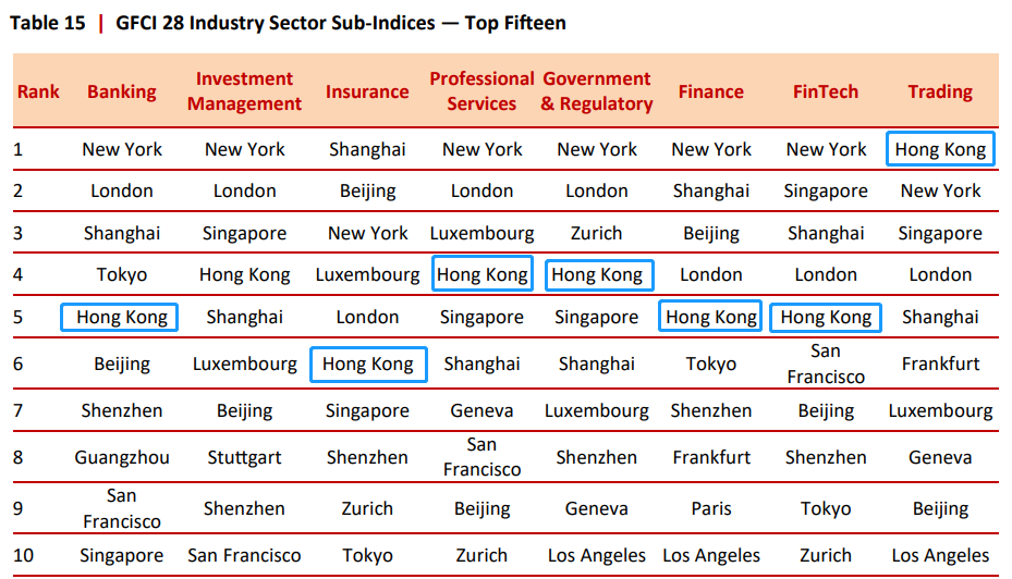 9月25日,英國智庫Z/YenGroup與中國(深圳)綜合開發(fā)研究院聯(lián)合發(fā)布的第28期“全球金融中心指數(shù)”(GFCI 28)報告顯示,香港以743的綜合評分位列全球第五。