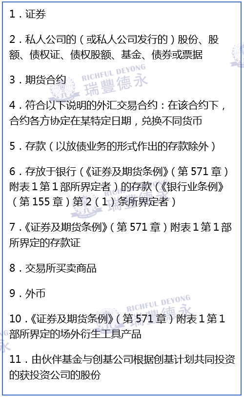 除了建議為附帶權(quán)益提供稅務寬減外,財經(jīng)事務及庫務局局長表示,此次立法也會對以私人形式發(fā)售的基金的利得稅制度作出若干改善,以利便基金在香港營運,包括容許基金持有的特定目的實體,可持有和管理《稅務條例》(112章)-附表16C指明的類別的資產(chǎn),具體指: