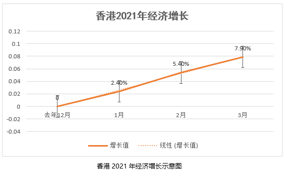 1.港府公布今年第一季(1-3月)的經濟增長了7.9%,相較于2020年底的數據高了近0.1個百分點。