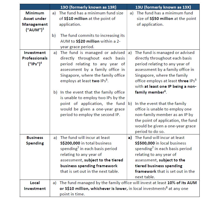 從2022年4月18日(含)起,向MAS提交的所有由家族辦公室(無論是受豁免為家庭管理資產(chǎn)的資產(chǎn)管理公司或是被同一個家族成員所控制的家族辦公室)直接管理或建議的基金申請,都必須滿足以下條件以符合S13O/S13U稅收優(yōu)惠計劃的資格。