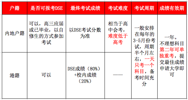 (1)DSE考試科目由4個核心科目加2-3個選修科目組成,大學(xué)錄取以最佳5門或最佳6門計算成績。