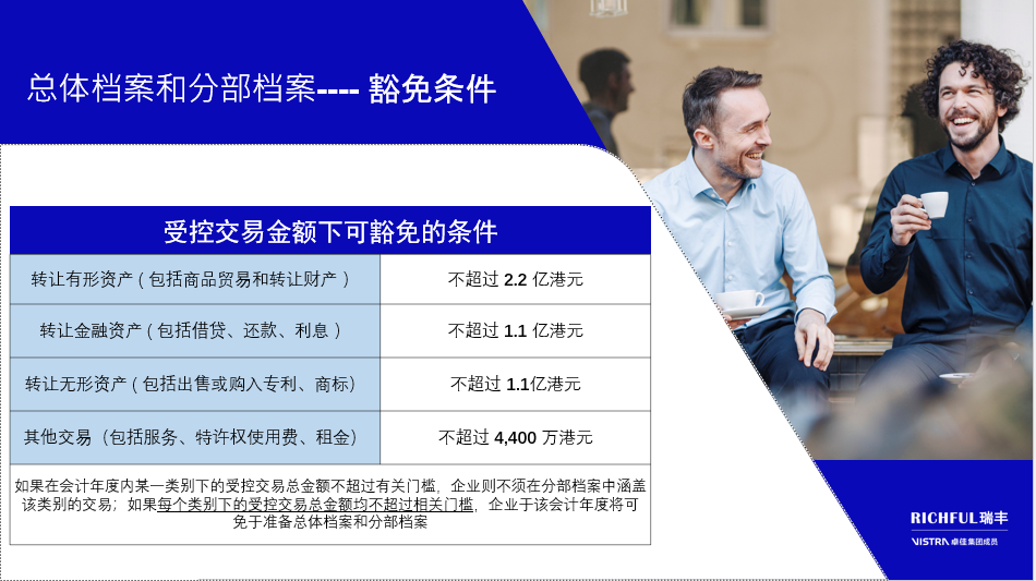 除符合一定條件的豁免情況外, 集團(tuán)的香港實(shí)體與關(guān)聯(lián)實(shí)體進(jìn)行交易時(shí),需要總體檔案和分部檔案。