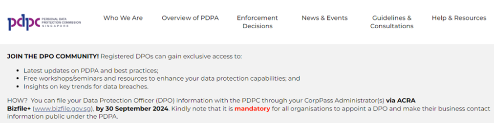 新加坡公司須于2024年9月30日前委任至少一名數(shù)據(jù)保護(hù)官DPO