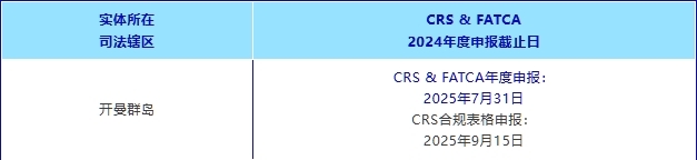 開(kāi)曼群島2024年度的共同申報(bào)準(zhǔn)則(CRS)和外國(guó)賬戶(hù)稅收合規(guī)法案(FATCA)申報(bào)截止日即將到來(lái)。該申報(bào)截止日適用于所有在2024年度成為CRS/FATCA定義下具有申報(bào)義務(wù)的開(kāi)曼群島金融機(jī)構(gòu)。例如,如果您已于2024年設(shè)立或者運(yùn)營(yíng)開(kāi)曼基金/基金管理人/基金SPV/投資實(shí)體等,此事項(xiàng)與您密切相關(guān)。