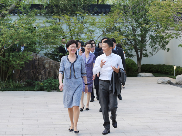 “我之所以來,是因?yàn)轳R云先生的魅力,因?yàn)槲蚁M⒗锇桶突貋硐愀凵鲜?。?月8日在浙商總會(huì)香港浙商聯(lián)合會(huì)成立儀式上,行政長(zhǎng)官林鄭月娥與浙江巨商馬云就香港發(fā)展真誠(chéng)對(duì)話。