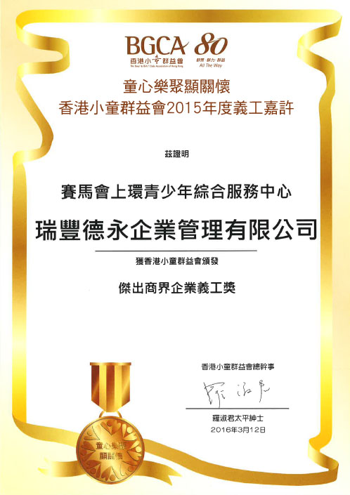 香港小童群益會(huì)杰出商界企業(yè)義工獎(jiǎng)