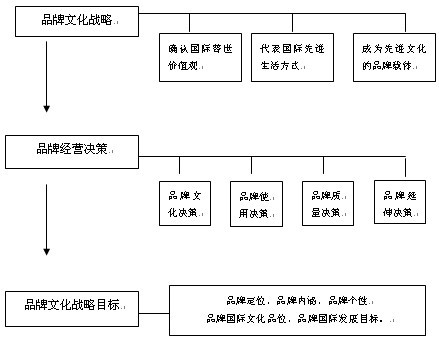 經(jīng)濟(jì)全球化必然伴隨品牌國(guó)際化。國(guó)際化的品牌必須跨越區(qū)域、國(guó)家、文化、意識(shí)形態(tài)的差異,為不同生活背景下的消費(fèi)者所接受。這就需要塑造與不同文化、亞文化相兼容的品牌文化。它可以借助CIS(企業(yè)形象識(shí)別系統(tǒng))等品牌規(guī)范工具,整合品牌形象國(guó)際化元素來(lái)體現(xiàn),最終實(shí)現(xiàn)與國(guó)際公眾有效的心理溝通。