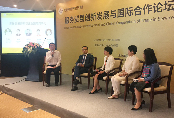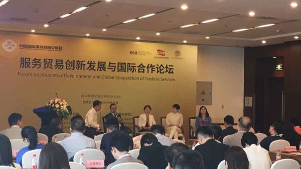 2019年5月29日,世界貿(mào)易中心協(xié)會、京津滬渝服務(wù)貿(mào)易聯(lián)盟、長江經(jīng)濟(jì)帶服務(wù)貿(mào)易聯(lián)盟在國家會議中心舉辦了2019中國國際服務(wù)貿(mào)易交易會(簡稱“京交會”)“服務(wù)貿(mào)易創(chuàng)新發(fā)展與國際合作論壇”。