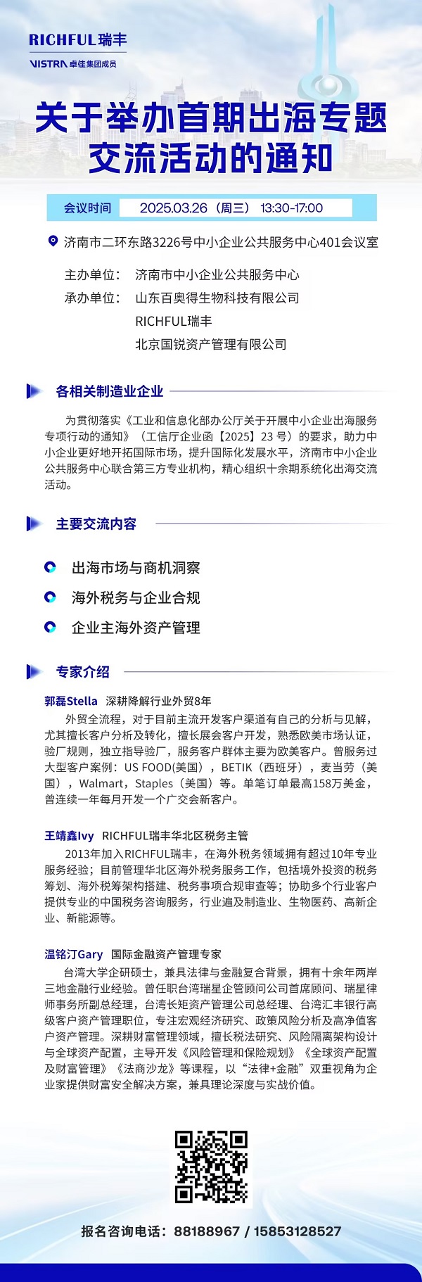 定期舉辦熱點(diǎn)主題離岸講座,與廣大客戶及時(shí)分享行業(yè)最前沿商機(jī)。