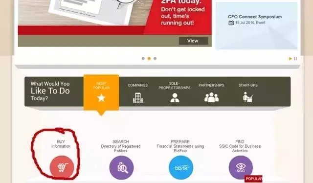 第一步:登陸注冊(cè)局官網(wǎng)(www.acra.gov.sg) 點(diǎn)擊紅圈圈內(nèi)Buy information