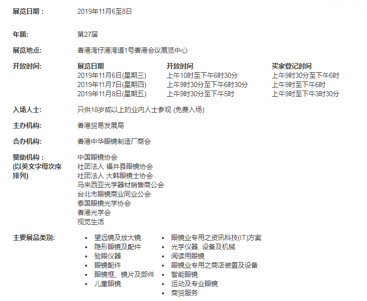 第27屆香港貿(mào)發(fā)局香港國際眼鏡展呈獻(xiàn)無與倫比的優(yōu)質(zhì)商貿(mào)平臺(tái), 讓參展商與環(huán)球買家建立聯(lián)系。2018年眼鏡展吸引來自111個(gè)國家及地區(qū)超過16,800名買家到場(chǎng)參觀采購,較對(duì)上一年上升4%,并云集810家參展商,打破歷屆紀(jì)錄。
