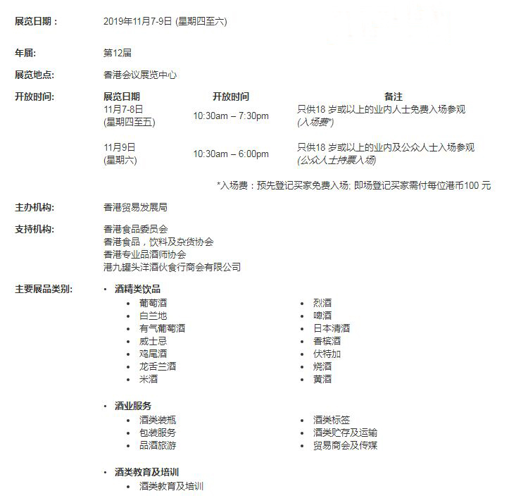 由香港貿(mào)易發(fā)展局主辦的第十二屆香港國際美酒展(美酒展)于2019年載譽(yù)重來,再度展出各種各樣香醇佳釀,為業(yè)界締造超乎所想的發(fā)展機(jī)遇。這項(xiàng)備受矚目的盛會(huì)已成為不可多得的美酒交易和采購平臺(tái),展覽為期三天,將假灣仔香港會(huì)議展覽中心舉行,匯聚來自世界各地優(yōu)質(zhì)葡萄酒和烈酒業(yè)界有影響力的買家、專家和品酒大師。美酒展于2018年吸引來自73個(gè)國家及地區(qū),近1萬9千名買家入場(chǎng)參觀,進(jìn)一步鞏固香港作為葡萄酒貿(mào)易中心的領(lǐng)先地位,同時(shí)確保一千多家優(yōu)質(zhì)國際參展商取得豐碩成果,開拓商機(jī)。