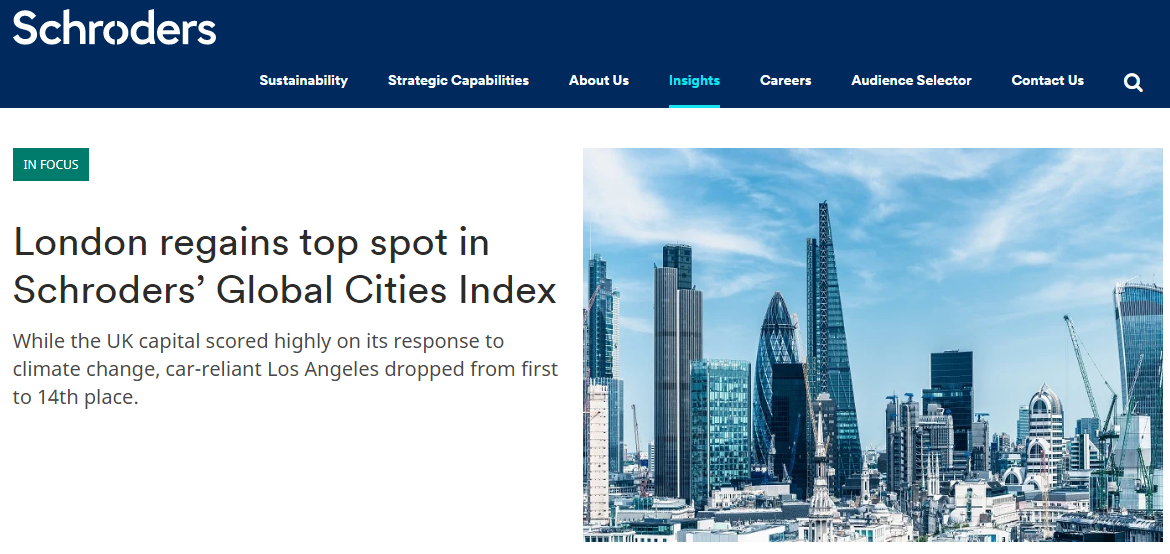 近日,全球資產(chǎn)管理公司施羅德(Schroders)發(fā)表了最新的《全球城市指數(shù)報(bào)告(2021)》,評(píng)選出30個(gè)全球最佳城市,其中,倫敦再次回歸榜首,獲得了世界最佳城市的稱號(hào)。