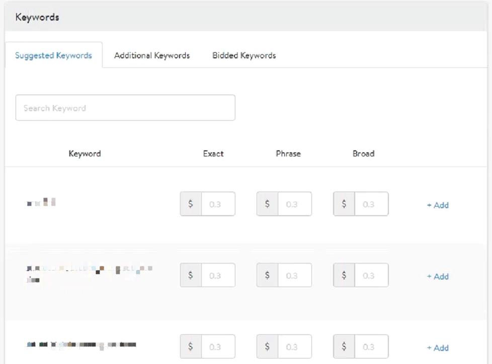 ④為與產(chǎn)品關(guān)聯(lián)的每個(gè)關(guān)鍵字選擇單獨(dú)的CPC出價(jià)