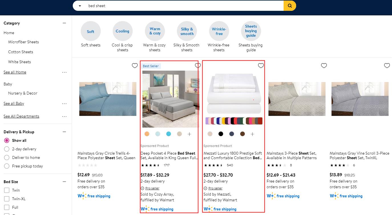 在線上零售業(yè)務(wù)爆炸式增長(zhǎng)之前,將重點(diǎn)產(chǎn)品放置在賣場(chǎng)購(gòu)物通道的顧客視線范圍內(nèi)是非常重要的。而線上零售則完全是不同的概念。在 Walmart.com 上為你的產(chǎn)品獲得優(yōu)質(zhì)位置的最佳方法之一是通過(guò)使用贊助商廣告,可以讓你的產(chǎn)品有更多機(jī)會(huì)出現(xiàn)在搜索結(jié)果的第一頁(yè)上。贊助商廣告是促進(jìn)產(chǎn)品銷售、增加或保護(hù)市場(chǎng)份額、向準(zhǔn)備購(gòu)買的大量客戶展示你產(chǎn)品以及提高品牌和產(chǎn)品知名度的催化劑。贊助商廣告是Walmart目前提供的唯一自助服務(wù)廣告類型。