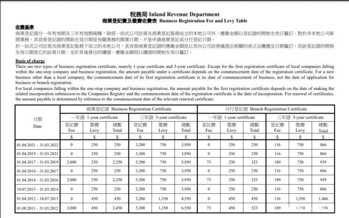 1.香港公司年審最主要的兩項(xiàng)任務(wù)是更新商業(yè)登記證與遞交周年申報(bào)表。商業(yè)登記證政府官費(fèi)是每年都會(huì)有浮動(dòng),費(fèi)用包括登記費(fèi)與征費(fèi),登記費(fèi)有可能會(huì)豁免,也有可能要收2000港元,具體費(fèi)用取決于不同的日期與當(dāng)年的香港財(cái)政情況,征費(fèi)過去十年從450港元降低到250港元。周年申報(bào)表暫時(shí)還在豁免期內(nèi),過了豁免期后一般收費(fèi)105港元。以往10年商業(yè)登記證收費(fèi)情況可參考下圖: