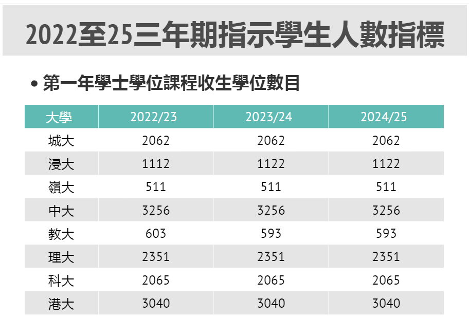 下表是2022年~2025年港八大的收生數(shù)目: