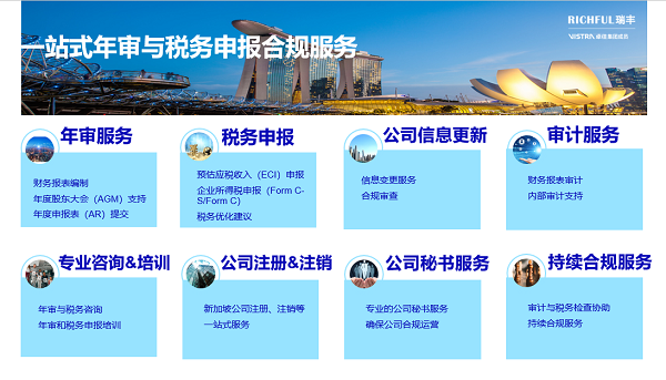 如果您對(duì)新加坡年審或稅務(wù)申報(bào)有任何疑問(wèn),歡迎隨時(shí)聯(lián)系我們,RICHFUL瑞豐將竭誠(chéng)為您提供專業(yè)支持!