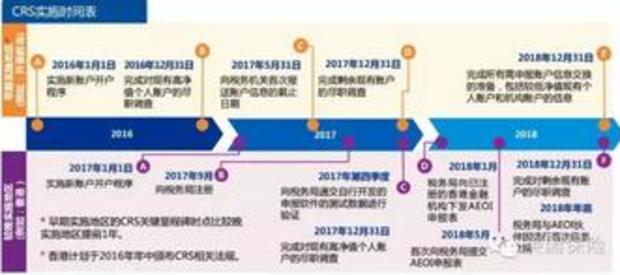 2017年1月1日,完成對新客戶開戶流程的改造,對于2017年1月1日以后的新開戶客戶,可以通過盡職調(diào)查程序識別出其中的非居民賬戶。2017年12月31日前,完成對高凈值(在2016年12月31日金融賬戶加總余額大于100萬美金)存量個人客戶的盡職調(diào)查程序,識別其中的非居民賬戶。2018年6月30日前(預(yù)計),完成向國稅總局的首次信息報送,并在以后年度每年定期向國稅總局進行信息報送。2018年9月30日前,中國將與其他參與 CRS 的轄區(qū)完成首次轄區(qū)間的信息交換,以后年度也將每年定期進行轄區(qū)間的信息交換。2018年12月31日前,完成對其余所有存量客戶的盡職調(diào)查程序,識別其中的非居民賬戶。