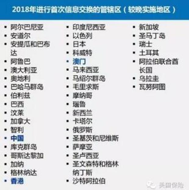 注:美國沒有簽署《通用報告準則》進行信息交換,因為美國已經(jīng)根據(jù)《海外賬戶納稅法案》(FATCA) 實施了自己的政府間財務(wù)信息收集體制(而且,原則上是回收的)。根據(jù)《海外賬戶納稅法案》(FATCA),從2014年開始財務(wù)信息就已經(jīng)收回美國了,因此美國目前沒打算,或者說也沒必要采納《通用報告準則》(CRS)。
